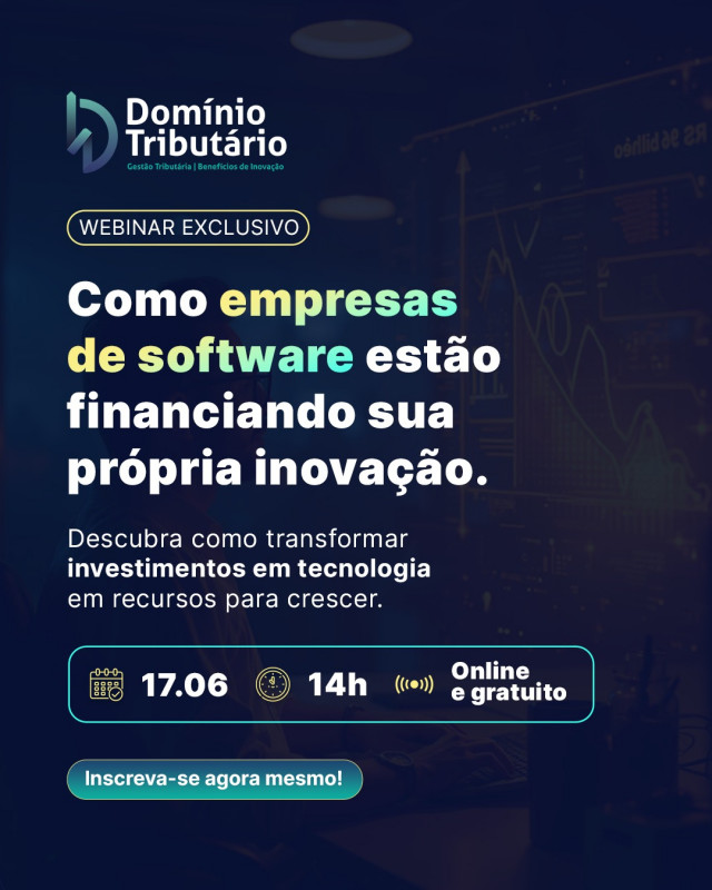 Na próxima terça-feira, 17 de junho, às 14h, a Domínio Tributário realizará webinar exclusivo para apresentar como as empresas de software estão financiando sua própria inovação. A transmissão online será pela Plataforma do Teams e, em 60 minutos, os participantes vão saber quais despesas de TI contam como P&D e recuperam impostos, como enquadrar seus investimentos como inovação, com segurança e o passo a passo da Lei do Bem aplicado num case real.