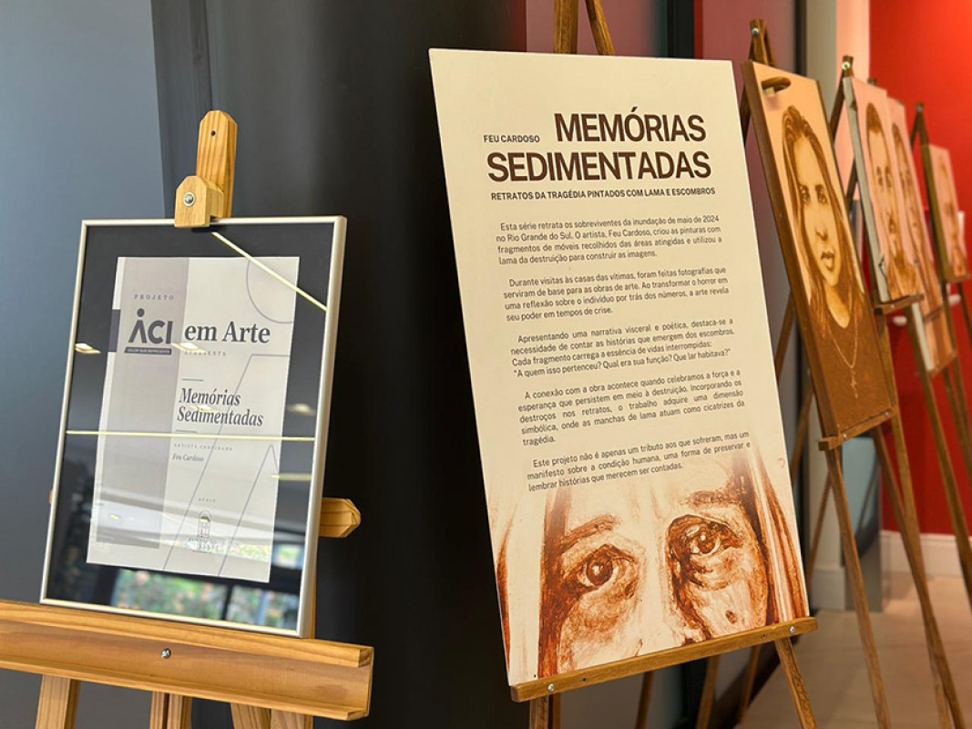 A exposição Memórias Sedimentadas integra o Projeto ACI em Arte, que tem o apoio da Fundação Frederico Ernesto Scheffel e oportuniza a talentos da região apresentar suas criações aos visitantes no Espaço Conexão, no térreo.