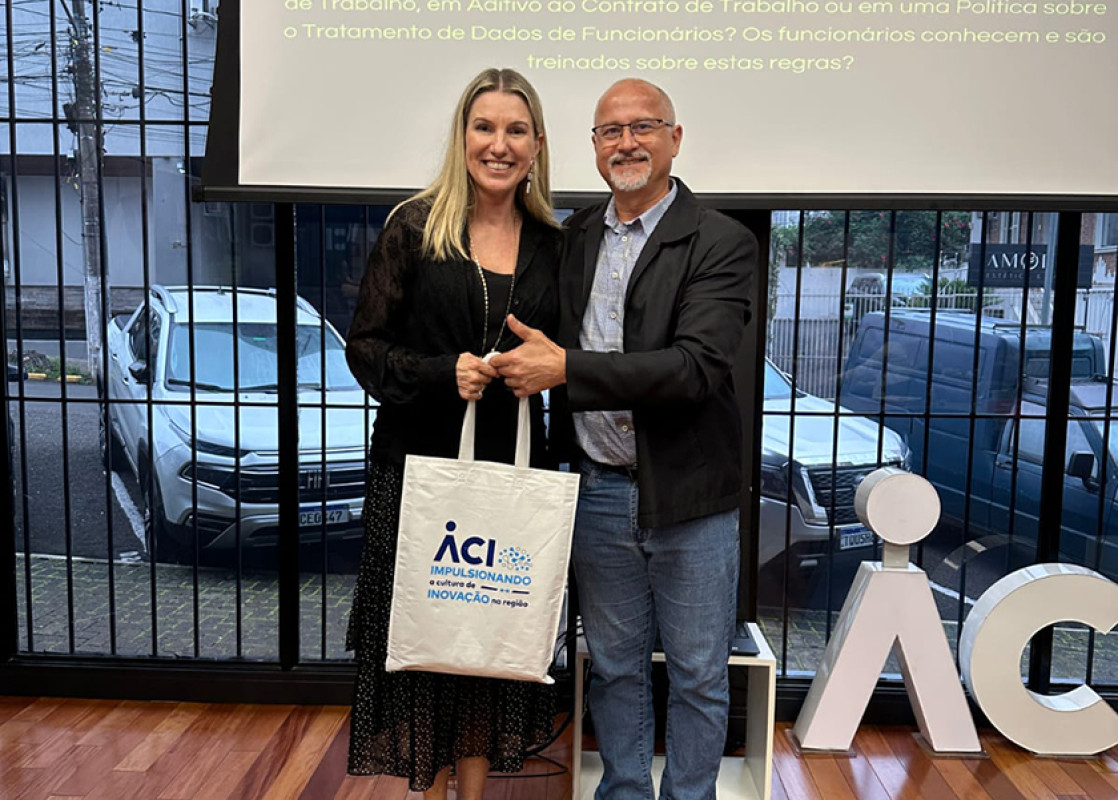 O papel estratégico do RH na adequação das empresas à Lei Geral de Proteção de Dados (LGPD) foi enfatizado por Izabela Lehn, advogada, mestre em direito, professora, vice-presidente Jurídica da ACI e consultora jurídica em LGPD e Inteligência Artificial para empresas, durante o Café da Manhã Gestão de Pessoas que a entidade realizou nesta segunda-feira, 17. A atividade teve moderação de Luís Artur Mendes da Silva, gerente de desenvolvimento humano do Grupo Editorial Sinos e integrante do Comitê de Recursos Humanos da ACI.