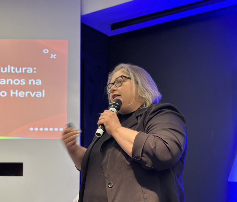 Abordando o tema Do Compliance à Cultura: SST e Fatores Humanos na Estratégia do Grupo Herval, Rochele explicou que a gestão dos fatores humanos está integrada a todas as ações do SESMT, reforçando o compromisso da organização com a segurança, o bem-estar e a valorização das pessoas. A integração entre SESMT, lideranças e áreas de apoio permite uma abordagem mais completa e preventiva, alinhada às diretrizes do Gerenciamento de Riscos Ocupacionais (GRO).