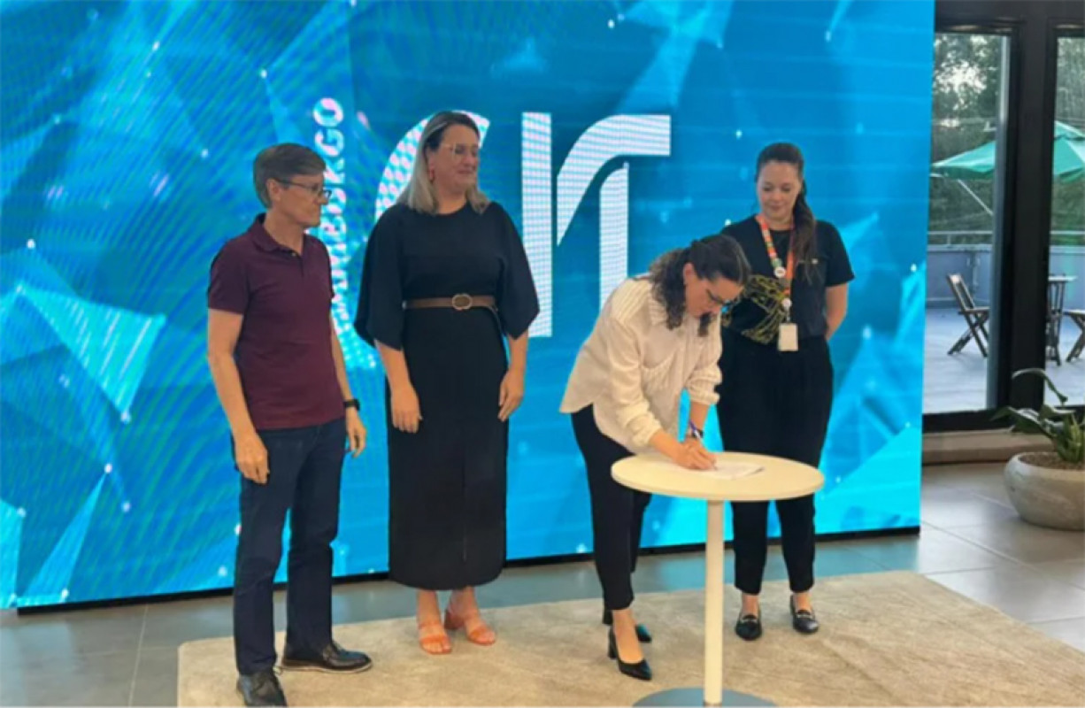 Durante a cerimônia, foi assinado protocolo de intenções para o programa de Formação de Agentes de Inovação no CIT. Assinaram o documento a secretária Daiana Monzon, representando a prefeitura de NH; Manuel Bruxel, pela Universidade Feevale; Graciane Berghan Konzen, da Ftec, e Sento Leonhardt, diretor-geral da Instituição Evangélica Novo Hamburgo (IENH).