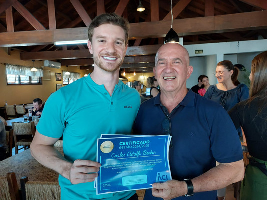 Também realizou a entrega dos certificados de participação a todos os integrantes e de assiduidade a Carlos Adolfo Becker. Cláudio Pozza não pode ser fazer presente e receberá seu certificado de assiduidade na reunião mensal de fevereiro.