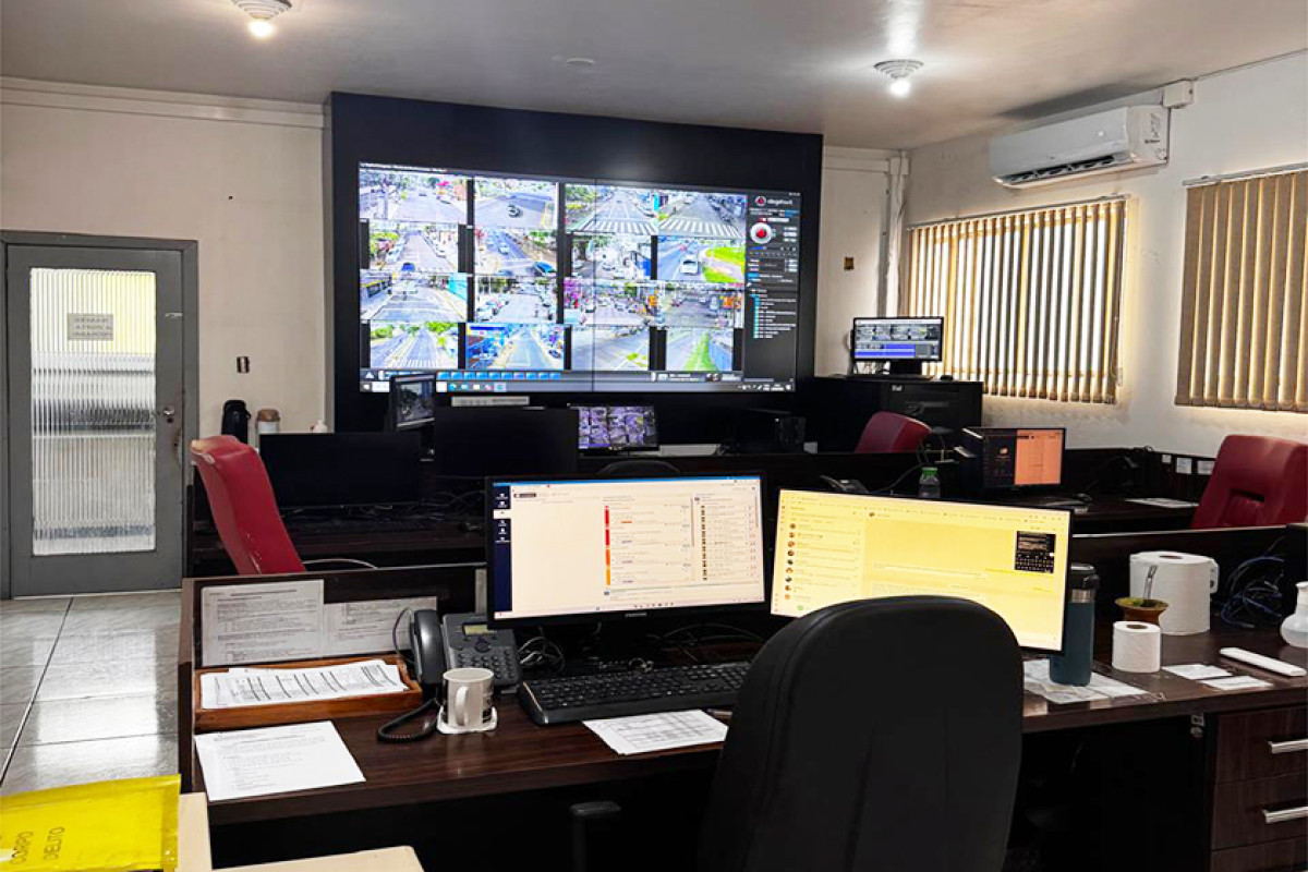 A estrutura de monitoramento foi um dos pontos apresentados, com uma central que atualmente acompanha cerca de mil câmeras distribuídas pela cidade, contribuindo para a prevenção e resposta a ocorrências.