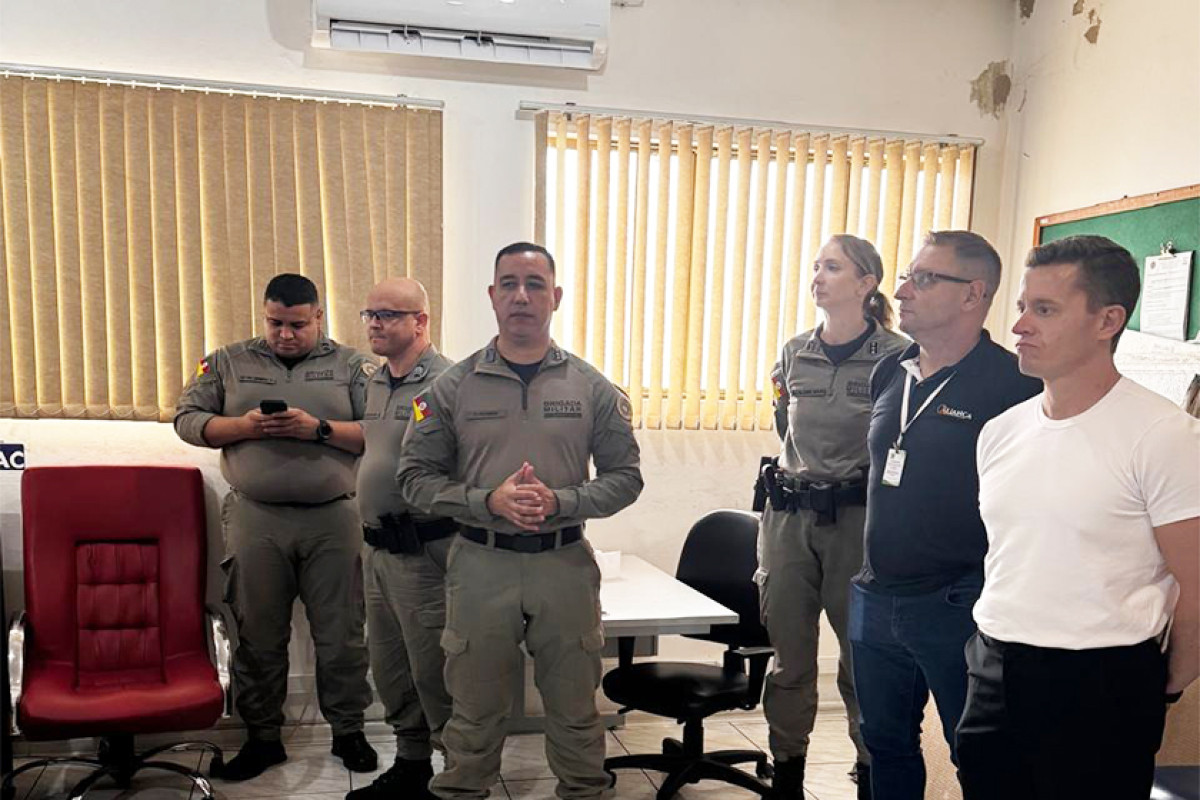 A agenda iniciou às 13h, com visita à unidade da Polícia Penal, e seguiu posteriormente ao batalhão da Brigada Militar.