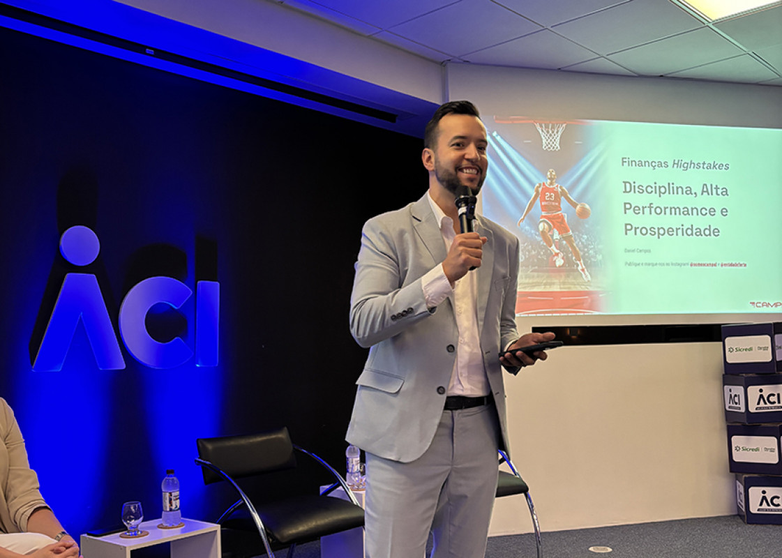 A ACI promoveu nesta sexta-feira, 03, a palestra “Finanças Highstakes: disciplina, alta performance e prosperidade”, conduzida pelo contador e diretor financeiro da Campal Contabilidade, Daniel Campos. Também participaram da atividade a vice-presidente de Serviços, Fabiana Bissolotti, e o integrante do Comitê de Inovação e Tecnologia Ítalo Bronzatti.