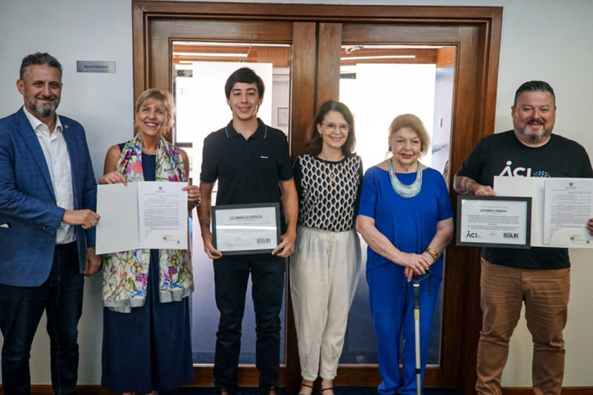 “É um gesto de respeito e gratidão a quem dedicou sua trajetória à defesa de quem trabalha dentro da lei. A Lei Marco Kirsch representa um marco para proteger empregos, valorizar o empreendedor correto e fortalecer o combate à informalidade no Rio Grande do Sul, e foi idealizada por ele”, complementou Issur.