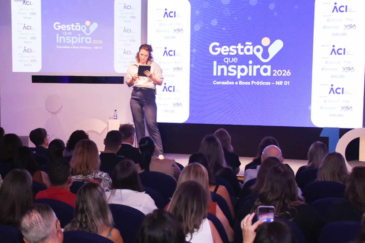Conexões, troca de experiências e boas práticas relacionadas ao bem-estar do colaborador e à NR-01 marcaram a edição do evento Gestão que Inspira, realizada na manhã de quinta-feira (19), no auditório da ACI, que esteve completamente lotado. Destinado a profissionais de recursos humanos, empresários e gestores de equipes, o encontro teve como objetivo ampliar o acesso a informações, conceitos e práticas de gestão voltadas ao bem-estar e à saúde mental no ambiente corporativo.