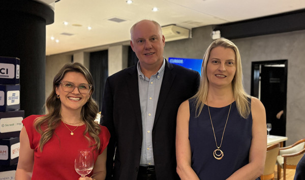 “Internacionalização não é só vender para o exterior. Inclui alianças, observar em tempo real o que está acontecendo no mundo e trazer para a realidade da empresa”, disse aos participantes do evento, no Restaurante Swan Novo Hamburgo. O presidente Robinson Klein fez a abertura e, em seguida, passou o comando da atividade à vice-presidente de Internacionalização, Shela Bonne, que agradeceu a presença dos profissionais e destacou a importância de patrocinadores e apoiadores do Dinner Talking.