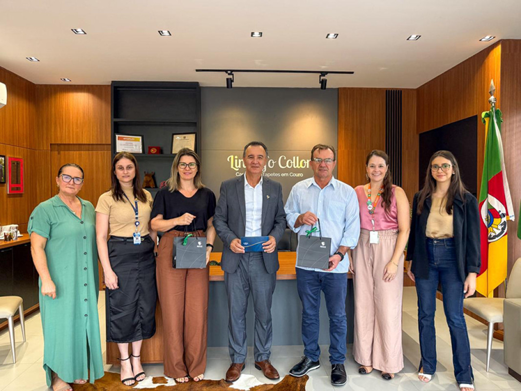 O reitor da Universidade Feevale, José Paulo da Rosa, se reuniu, nesta quinta-feira, 19, com o prefeito de Lindolfo Collor, Gaspar Behne. Ele esteve acompanhado da diretora de Inovação, Manuela Bruxel, e da chefe de Gabinete, Isabela Guzzon. Pela municipalidade, também participaram do encontro a secretária Municipal de Educação e Cultura, Tatiana Grellmann Presser, a secretária Municipal de Administração, Planejamento e Turismo, Ana Paula de Oliveira Fuchs, e a coordenadora Pedagógica e Administrativa da Semec, Maileni Rohde Erhart.