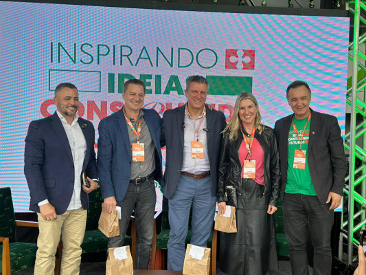 O presidente, Robinson Klein, e a vice-presidente Jurídica da ACI, Izabela Lehn, foram speakers do painel IA Estratégica: Como se Preparar para o Futuro, no Palco Inspira, do Novo Hamburgo Feevale Summit nesta quarta-feira, 1º de outubro. Também participaram Alsones Balestrin, conselheiro de administração e ex-secretário de Estado de Inovação, Ciência e Tecnologia do RS, e Níveo Lewis Delgado, presidente da Fundacred (fundação que oferta crédito educacional) e consultor em transformação digital.