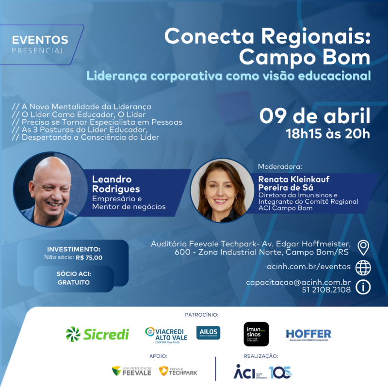 Liderança corporativa é tema do próximo Conecta Regionais: Campo Bom, dia 9 de abril