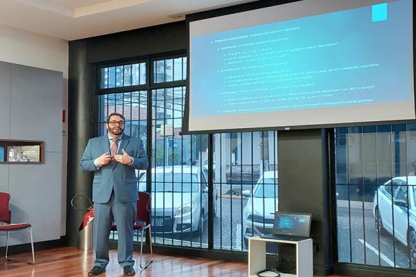 Durante uma hora de meia, Cruz discorreu sobre a adoção de medidas coletivas e a busca pela cultura da paz, método de conciliação pré-processual entre trabalhadores e empresas desenvolvido pelo TRT-4, e respondeu a perguntas dos participantes.