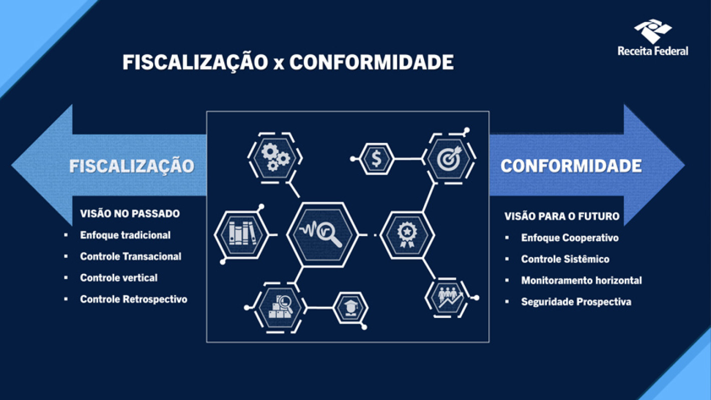Barros enfatizou que o Programa OEA Brasileiro possui quatro estágios: facilitação aos que cumprem as normas, assistência técnica aos que buscam cumprir as normas, mas nem sempre conseguem, detecção aos que não querem cumprir, mas o farão se pressionados e repressão aos que decidem não cumprir. “Enquanto a fiscalização tem visão no passado e enfoque tradicional, conformidade visa ao futuro e tem enfoque colaborativo”, explicou o palestrante.