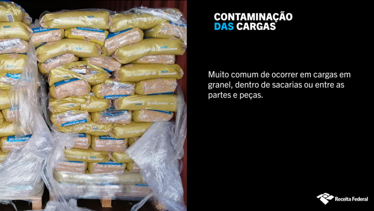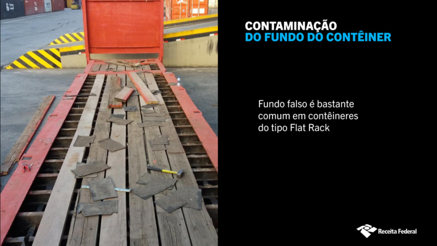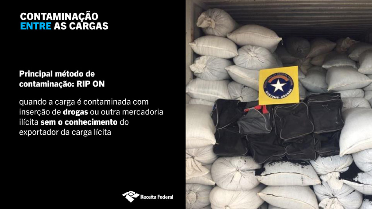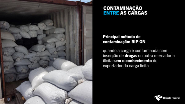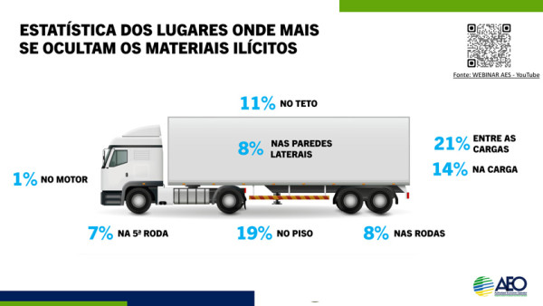 Em sua apresentação, o auditor-fiscal revelou como o crime organizado seleciona as cargas para contaminação. Geralmente, conhecem o destino da carga, se há espaço no container, a localização no pátio e no empilhamento e os dispositivos de segurança, como o número do lacre. Estatística indicam que os lugares onde mais se ocultam os materiais ilícitos são entre as cargas do caminhão (21%) e nas cargas (14%).
