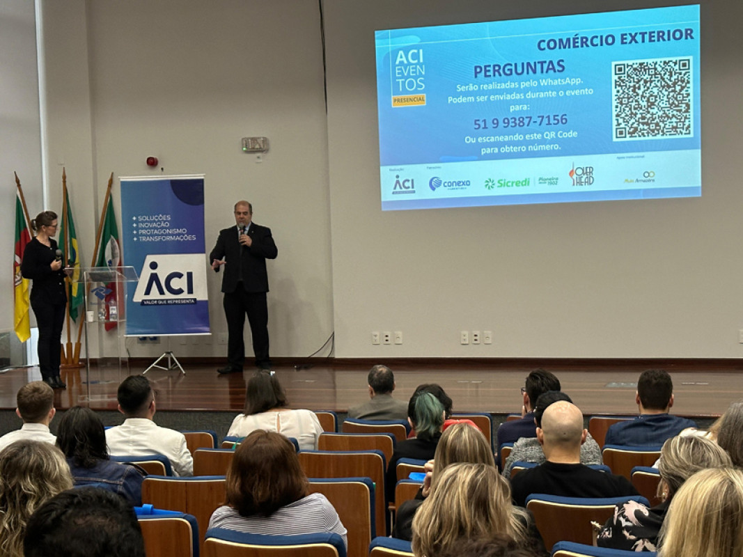 Em evento promovido pela ACI e pela Delegacia da Receita Federal em Novo Hamburgo nesta terça-feira, 06 de agosto, Fabio Lemes Barros, auditor-fiscal da Receita Federal e membro da EqOEA da Alfândega de Curitiba/PR, apresentou as inovações do OEA a representantes de empresas que atuam no comércio exterior no Vale do Sinos. O evento teve a participação de Ingrid Ruschel Coimbra, delegada adjunta da Alfândega de Porto Alegre (que recentemente desligou-se da Alfândega de Novo Hamburgo) e Sheila Bonne, vice-presidente de Internacionalização da ACI.